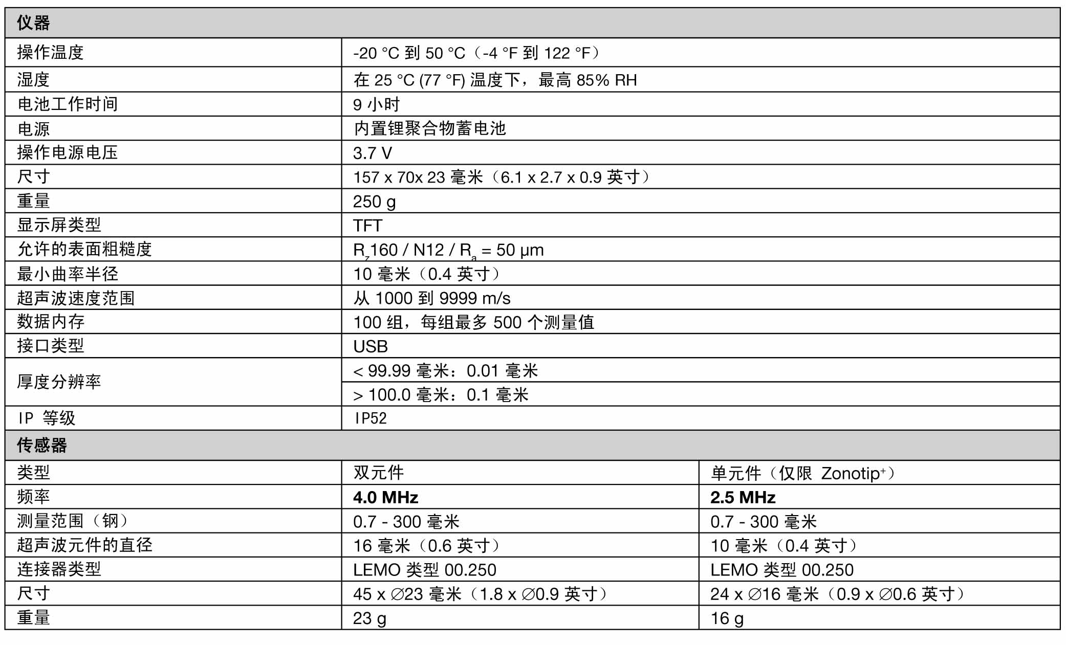 Zonotip 和 Zonotip+(帶有附加功能)設計用於測量鐵和非鐵金屬以及由聚合物、玻璃、冰和其他低超聲波衰減的材料製成的部件的厚度。